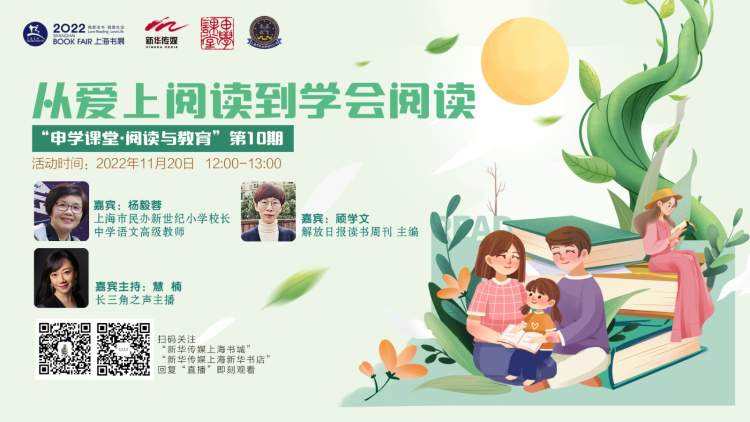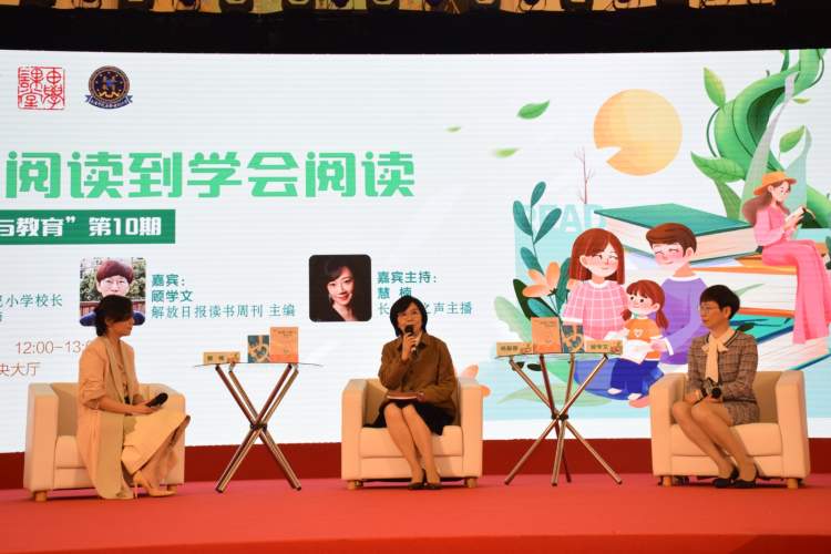 “申学课堂·阅读与教育”第10期:从爱上阅读到学会阅读,今天在上海书展中央大厅举办。邀请到了上海市民办新世纪小学校长、中学语文高级教师杨毅蓉和解放日报读书周刊主编顾学文,她们与上海电台长三角之声主播慧楠一起聊一聊亲子阅读与家庭教育。