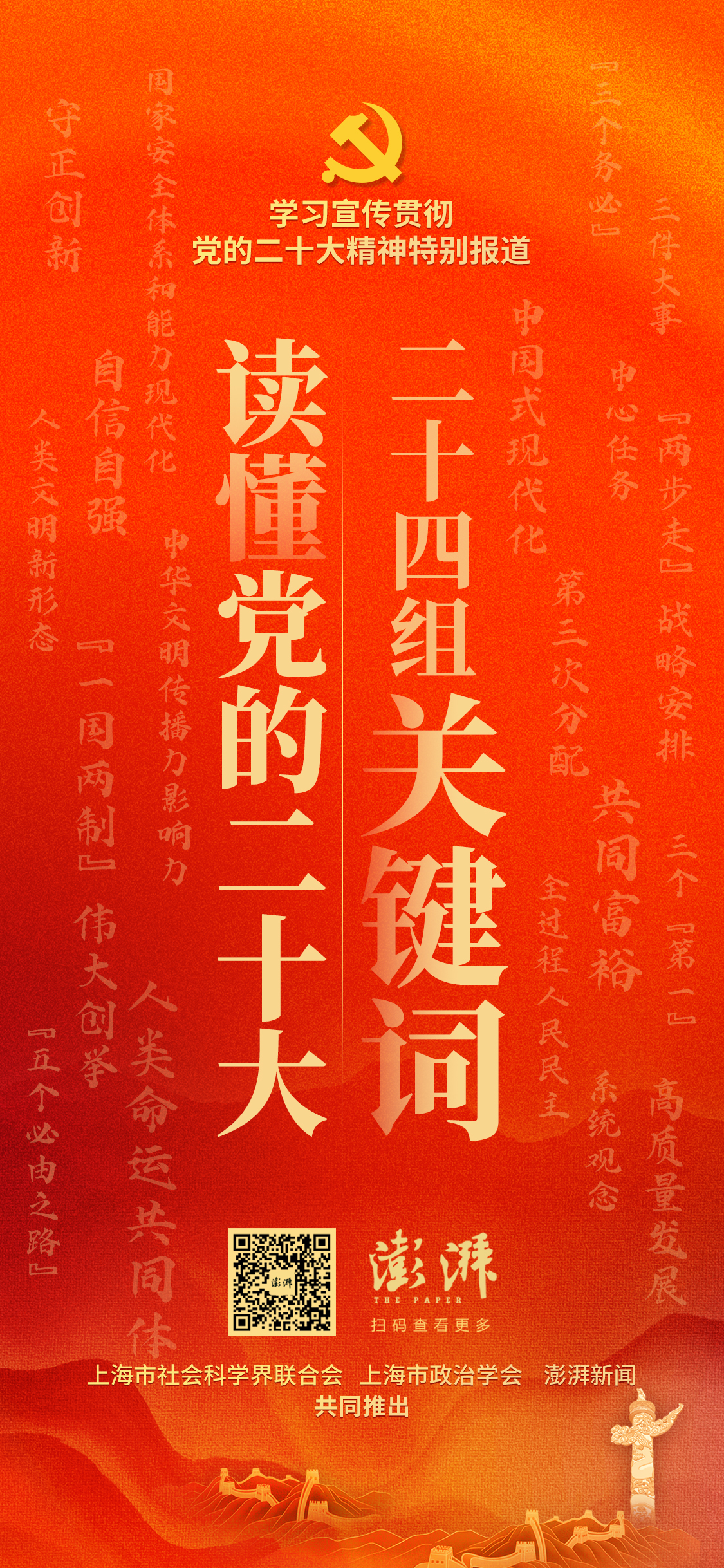继全国两会关键词、新中国成立70周年关键词、“四史”关键词、“百年共产党人精神谱系”关键词、“新时代治国理政小常识与大道理”关键词专栏之后,澎湃新闻联合上海市社会科学界联合会、上海市政治学会开启“党的二十大”关键词专栏,聚焦党的二十大报告中的新表述、新观点撰写文章,传播和普及大会精神。
