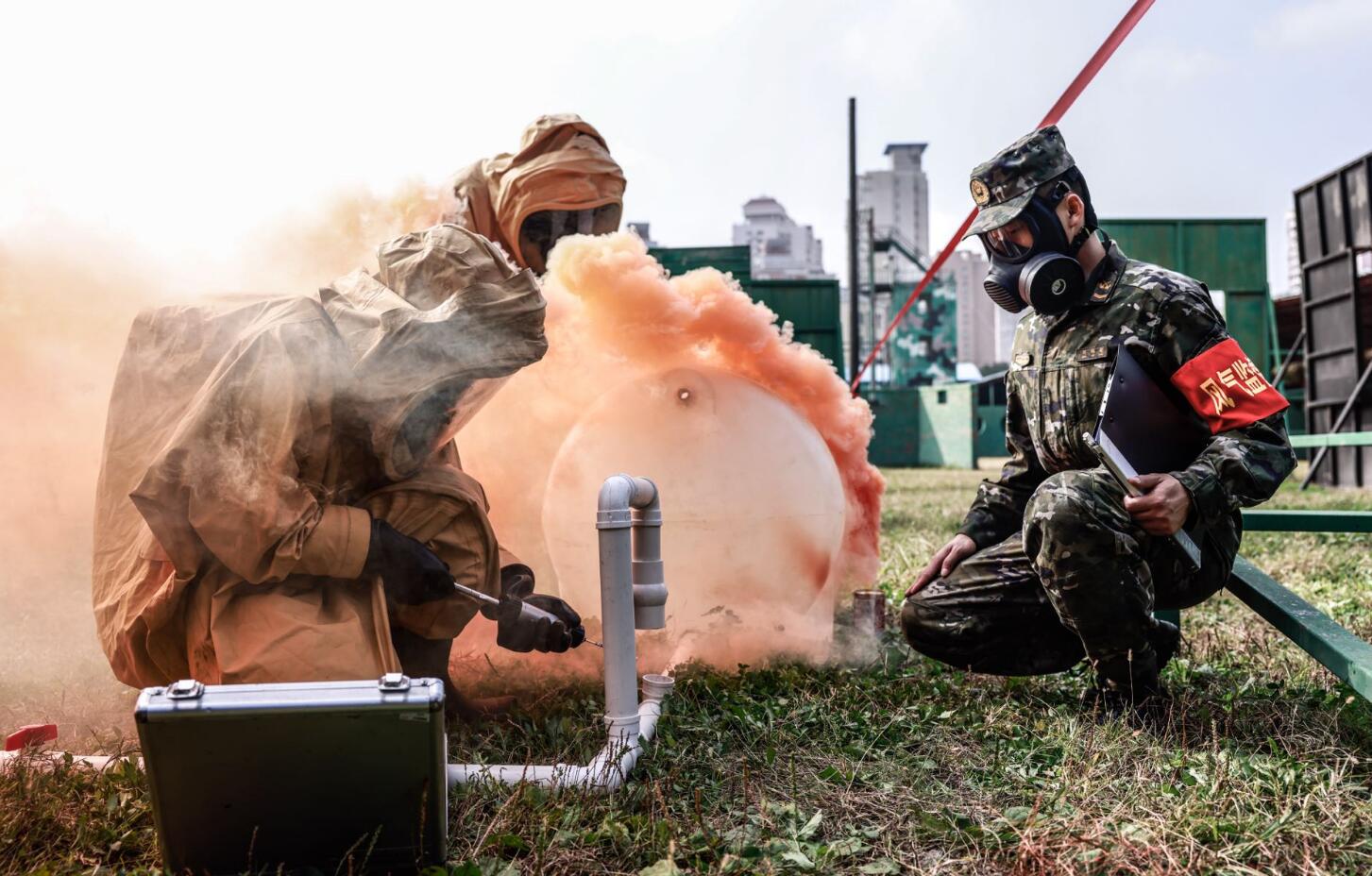 开设野战化验室、喷火器射击……直击武警工化分队应急演练