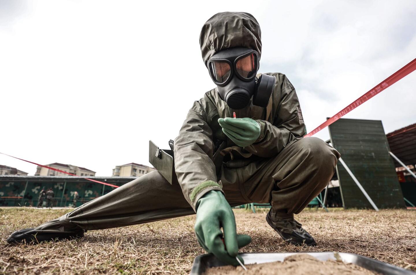 防化分队对现场标定物进行检测