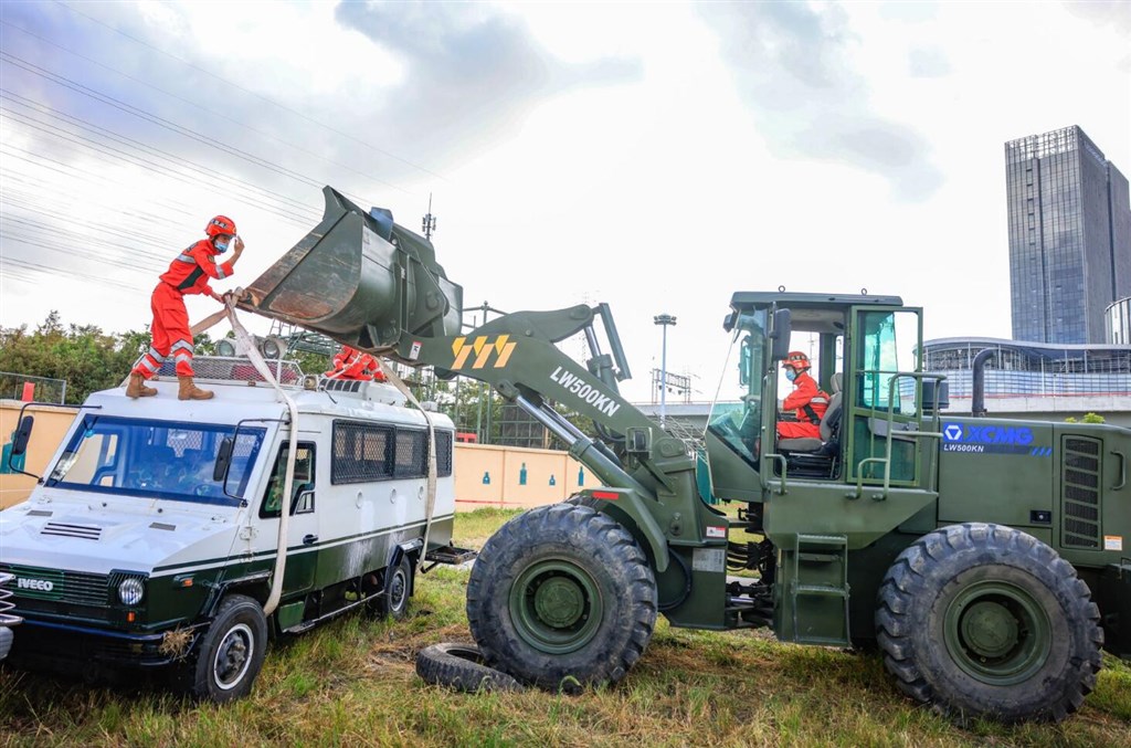 救援队员搬运救援器械