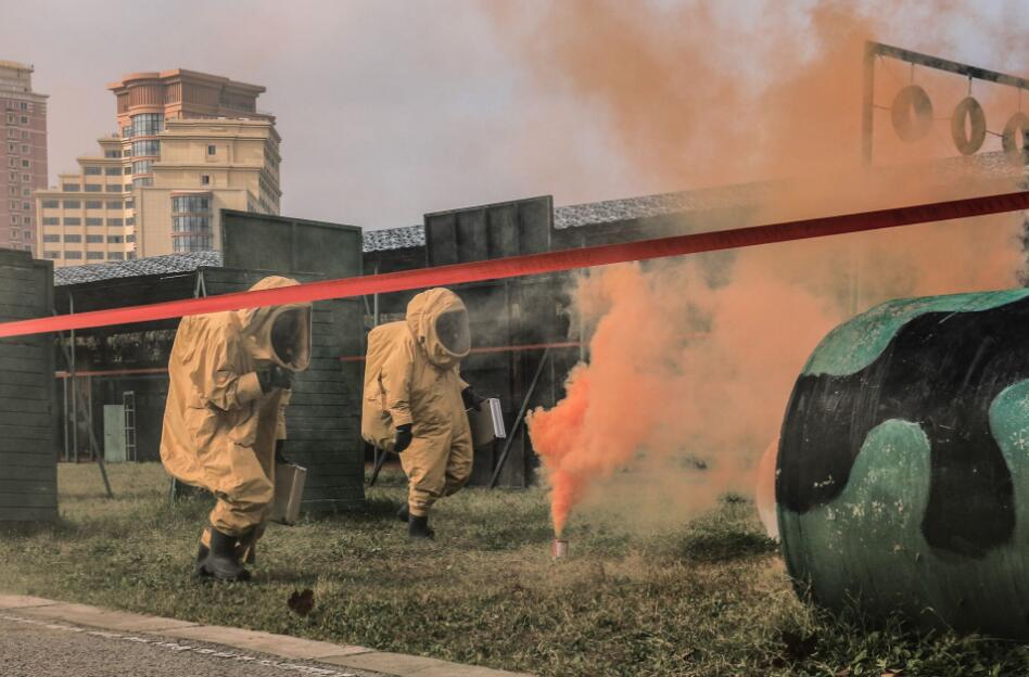 演练过程中,导调组从严从难设置内容,不提前告知沾染范围、化学品种类,还通过增加烟雾遮障模拟化学品残留物的方式构造多种复杂情况,提高演练难度。