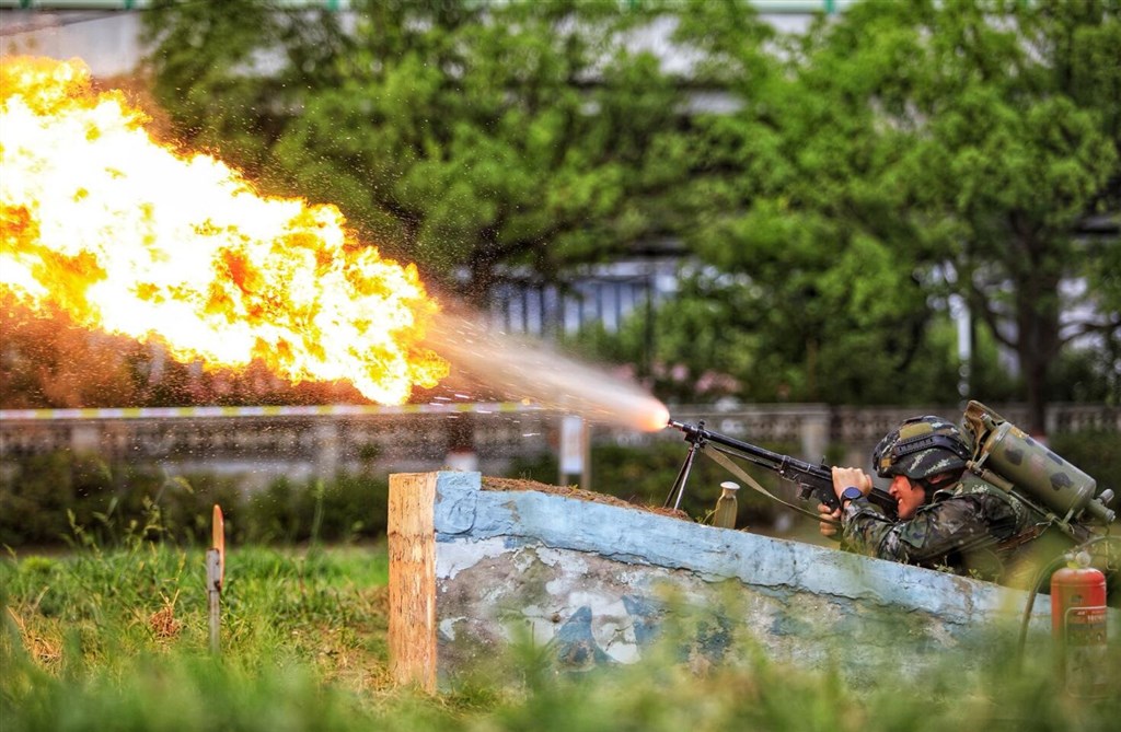防化分队进行喷火器射击