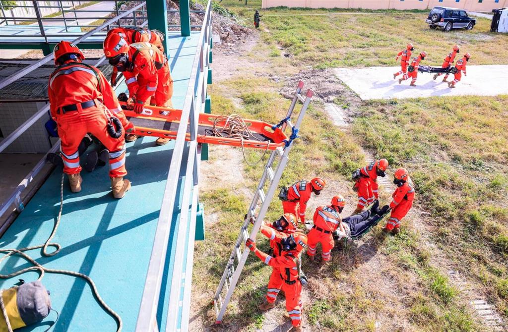 他们携带便携救生装备深入事故坍塌区,使用雷达生命探测仪、蛇眼生命探测仪等装备结合人工呼喊的方式精准标记被困人员,操作内燃无齿锯、液压圆盘锯、多功能剪断钳等装备快速打通救援通道,救援队员结合现地评估作业环境制定救援方案,采用高层建筑斜向救援、狭小空间救援、竖井救援、水平拉梯救援等救援技术实现对被困人员转移救出。