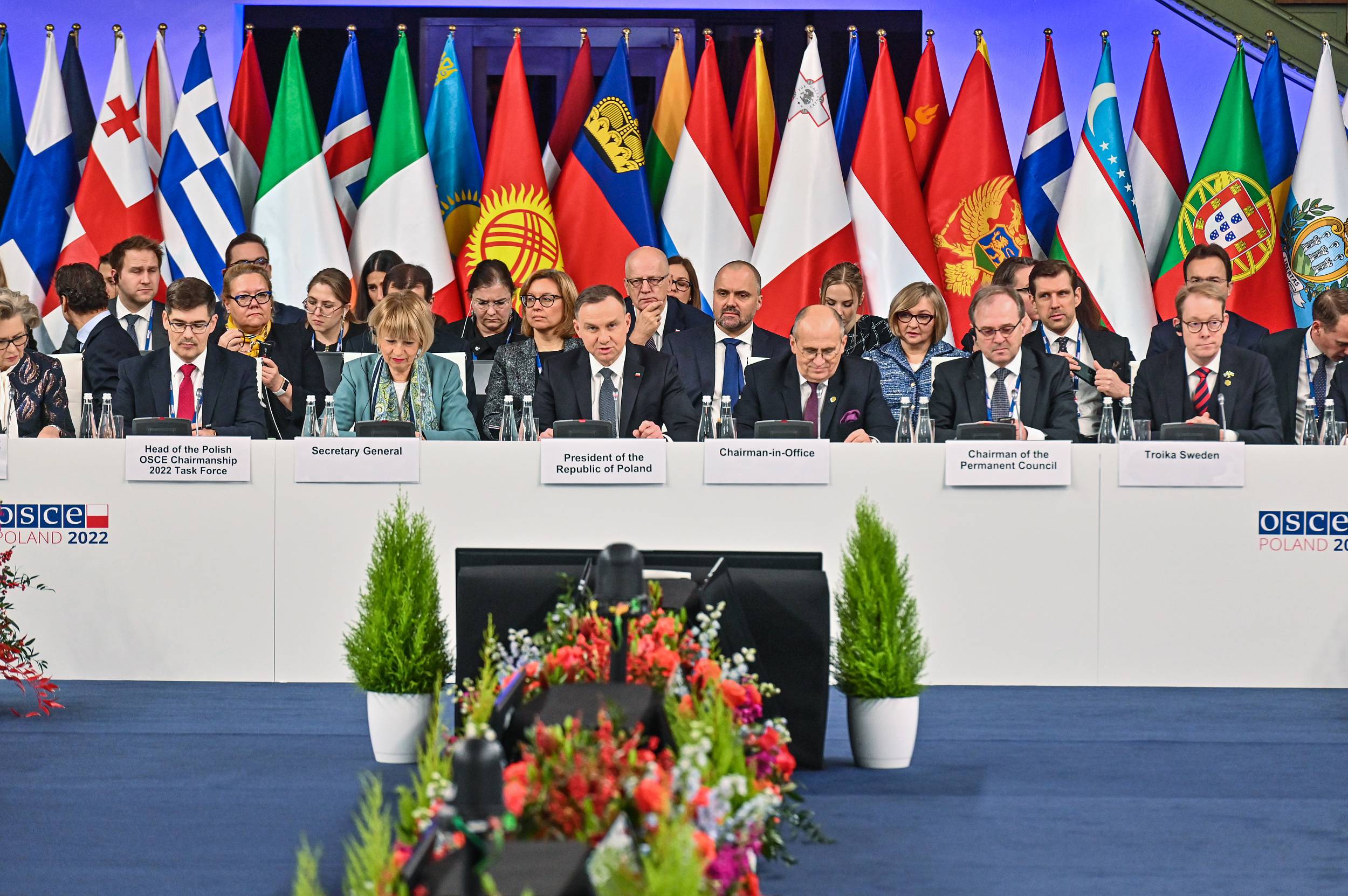 当地时间2022年12月1日,波兰中部城市罗兹,为期两天的欧洲安全与合作组织(欧安组织)部长级理事会会议在波兰中部城市罗兹开幕,来自欧安组织五十多个成员国的二百多名代表参会。 视觉中国 图