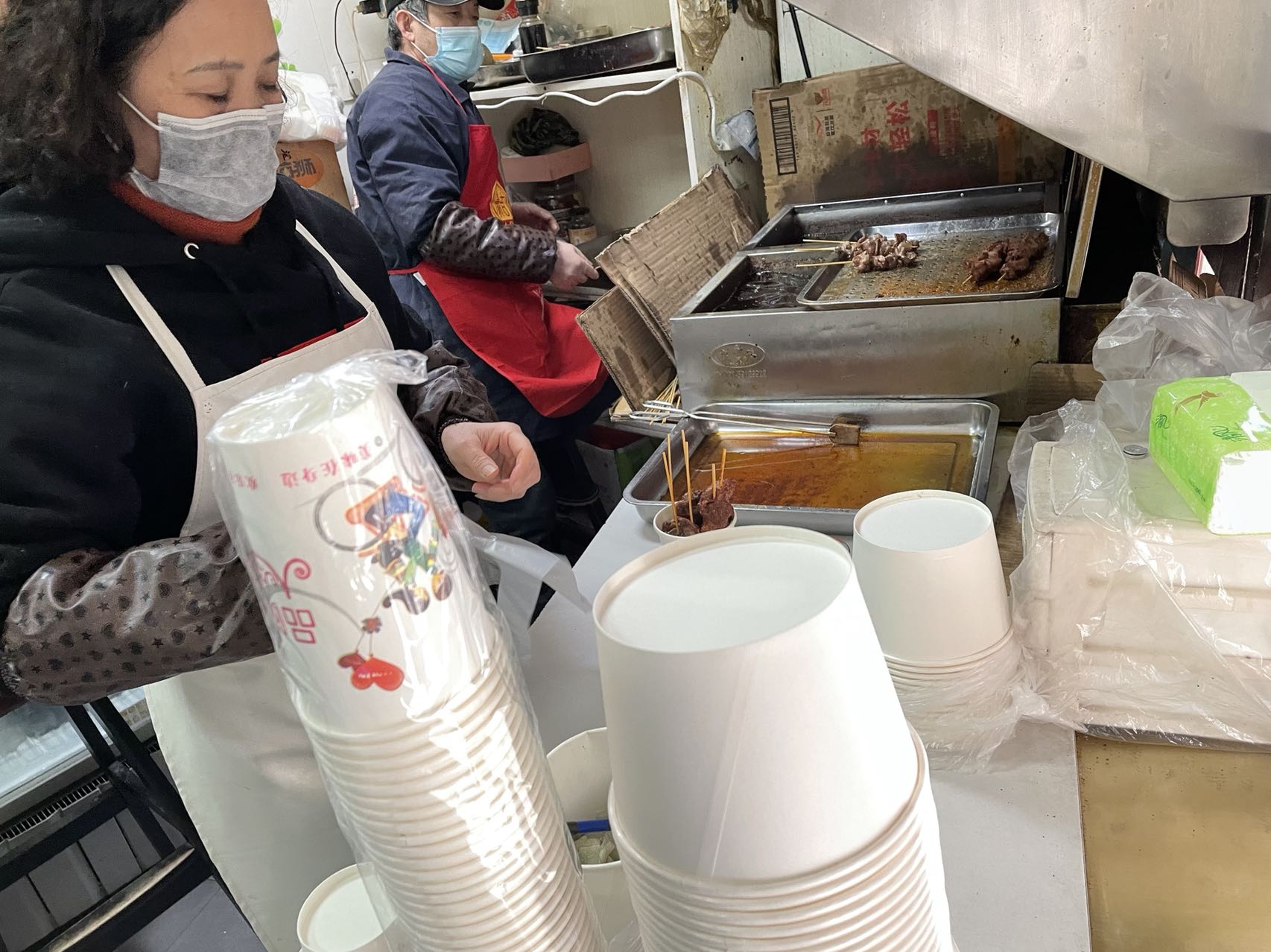 受此波疫情影响,“盐城八大碗”的顾客中,选择打包带菜的多了起来。算上临时工,这家餐饮店近期已有8名店员感染,3名店员在岗维持经营。