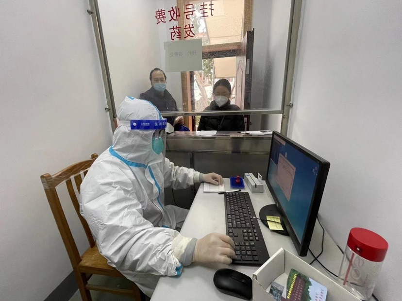 发热哨点的收费窗口是中心近期工作量较大的窗口之一,面对患者数量的激增,来自金项村中心卫生室的平忆帆,在完成村卫生室日常诊疗之外,他还承担起了发热哨点门诊的挂号、收费工作,他每次一坐就是四五个小时,中饭晚饭吃不上是常有的事儿。作为“90后乡医突击队”的队长,平忆帆表示,“我们不断为自己打气,为同伴加油!每个窗口都是一面旗帜,是医务人员坚守岗位、永不畏惧的标志,是疫情来临冲锋一线、勇往直前的决心和担当。”