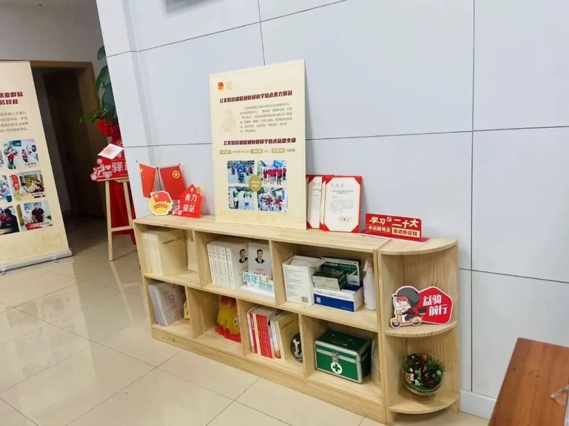在江苏路街道圆通快递镇宁路点,除了一应俱全的防疫物资,在“益骑前行”的标志牌下,还整齐摆放着各类书籍,供快递员、外卖小哥等休息时阅读。“益骑前行”青年突击队队长胡永胜告诉记者,“青春奉献,从我做起,从小事做起。感谢政府的关心,新的一年,我将继续为建设和美社区作出新贡献。”