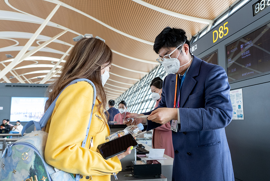 旅客在登机口扫描登机牌准备登机。受访者供图