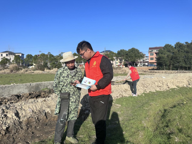 1月31日,江西省宜黄县气象局台工作人员深入田间地头,向农户介绍未来天气趋势,建议农户抢抓农时做好春季田管 图/黄紫洁
