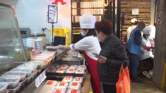 外卖窗口前,同样不时有市民和外卖骑手前来购买或取货。市民张女士告诉记者,自己原来就住在顺昌路,离盛兴点心店不远。现在点心店搬迁到这里,自己也跟着过来了,“满怀旧的。今天有空来买些汤圆带回去,正月十五吃。”一位前来取货的外卖骑手告诉记者,平时这里的订单也不少,这几天特别多,“因为元宵节马上就到了呀。”