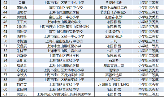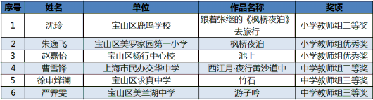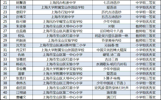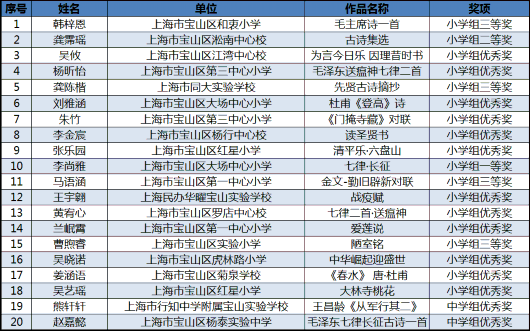 2022第四届“诗教中国”中华经典诵写讲大赛上海赛区获奖名单(宝山区)