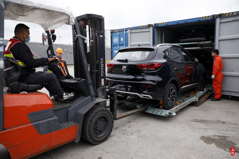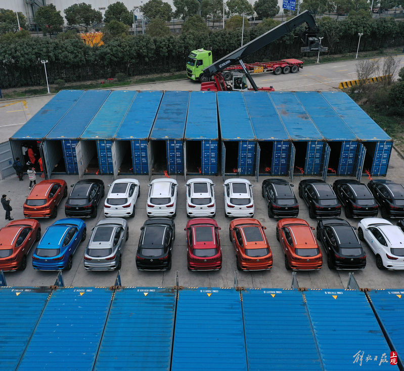 日前,中远海运上海临港集运物流场站内,一辆辆新出厂的MG名爵品牌上汽新能源汽车才下拖板车,就要三三两两被装入集装箱,住进属于自己的“海上公寓”前往欧洲市场。上月春节假期,为满足海外市场快速增长的用户需求,上汽出口车海外发运量高达21600辆,创下中国车企“单周海外发运量”历史纪录。