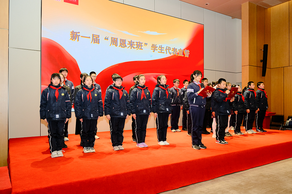 中共一大纪念馆和上海翔宇公益基金会共同发起创建新一届“周恩来班”,得到了江浙沪三地各中小学校的积极响应,通过形式多样的争创活动,共有六所学校脱颖而出,上海市徐汇区市二中学、上海市虹口区北郊学校、上海市黄浦区格致初级中学、江苏省苏州市第一初级中学、浙江省金华东阳市横店南上湖小学、上海师范大学附属宁波实验学校,获得“周恩来班”这一荣誉称号,嘉宾领导登台为各学校授牌以资鼓励。新一届“周恩来班”的学生代表上台宣誓。
