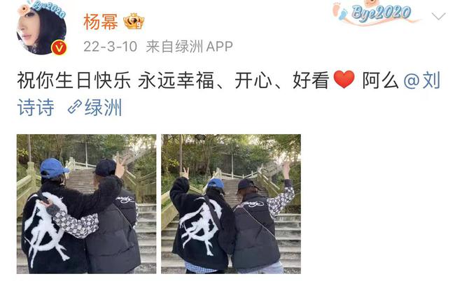 在去年二人生日当天杨幂和刘诗诗就互相给对方送生日祝福,并互称“阿么”,在方言里是“亲爱的”的意思。