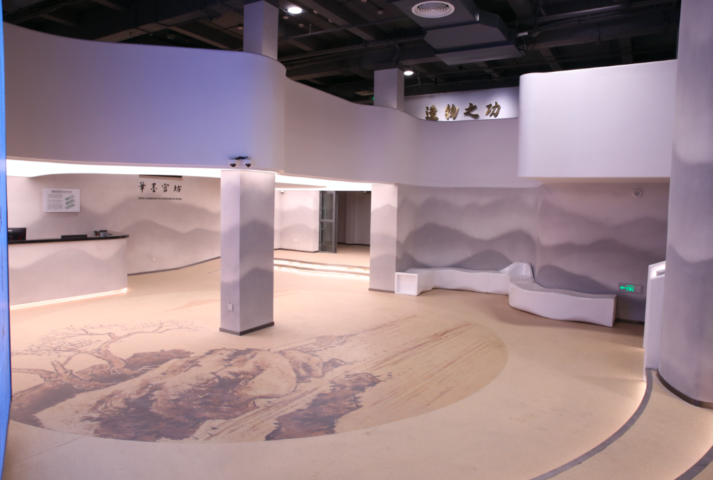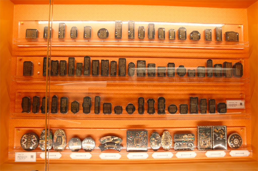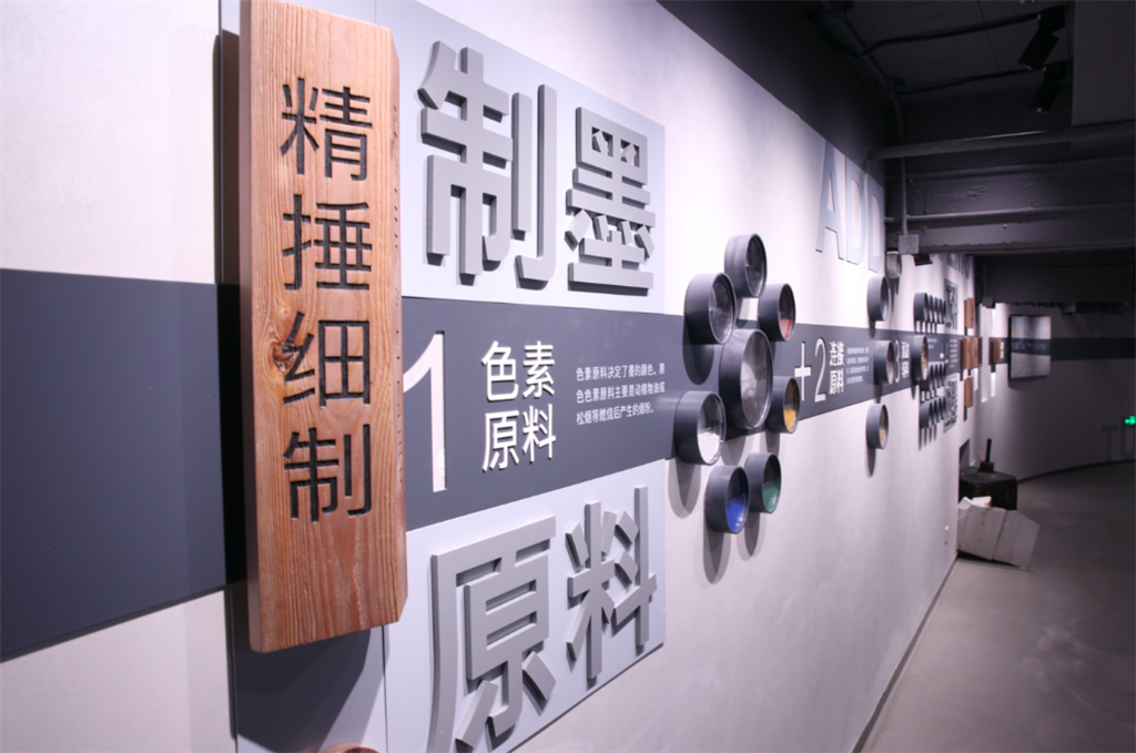 沿着旋转楼梯进入一楼中庭,来到中国最大的墨模宝库。落地玻璃窗向,是从明代万历年开始,绵延四百余年的上万副墨模。窗外游客则可以通过墨模宝车查询机屏,与宝库内的墨模进行游戏交互。通过预约,游客还可以走进中国最大的墨模宝库,邂逅北京故宫博物院藏墨的制作墨模,在墨模的文化艺术中“深度游”。