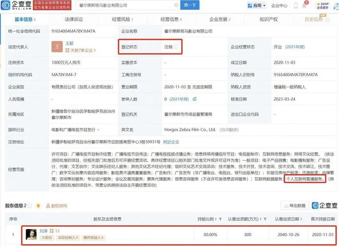 刘涛持股的直播公司已注销 刘一刀直播账号已停更