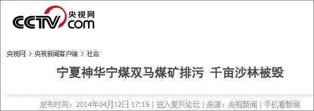 央视新闻2014年曾以《宁夏神华宁煤双马煤矿排污千亩沙林被毁》为题报道过孙先生林场水源被破坏一事。孙先生当时表示,他2003年在马家滩镇承包了万亩荒沙滩,植树治沙,由于当地新建了一个名叫“神华宁煤双马煤矿”的项目,导致千余亩沙林被毁,破坏了水源。