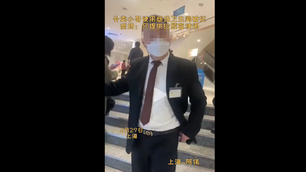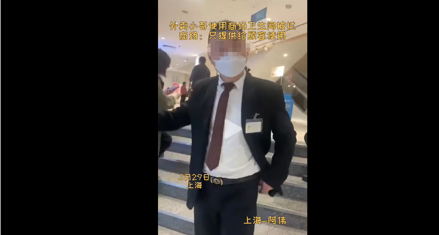 近日网传一则视频:一位外卖小哥打算进入位于上海静安寺商圈的久光百货使用洗手间时,被商场工作人员阻拦。对方表示该洗手间是给顾客使用的,针对外卖小哥另有“专门的”洗手间供使用。