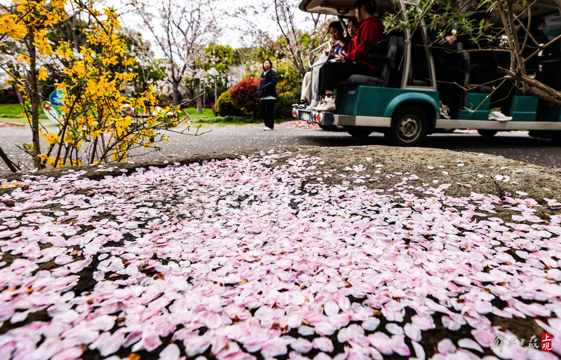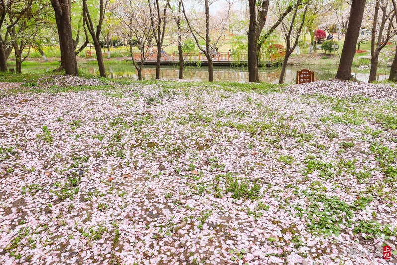 抬头看樱花低头见花毯,来顾村公园邂逅一场“樱花雨”