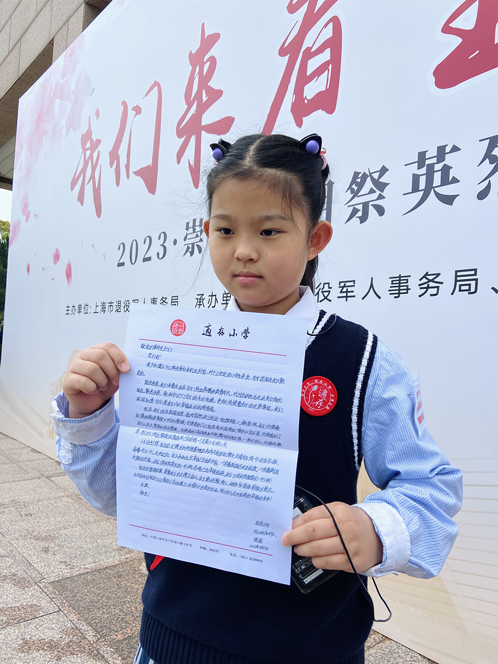 适存小学四(2)班学生陈诺带来一封写给革命先烈的信。澎湃新闻记者 陈悦 图
