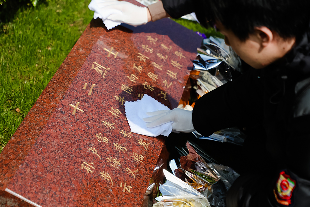 苍松翠柏间,祭扫市民在烈士墓区肃立默哀,向英雄烈士表达无限追思。众人俯身用白毛巾轻拭墓碑,用最朴素的方式传递对英烈的敬仰与感恩之情。