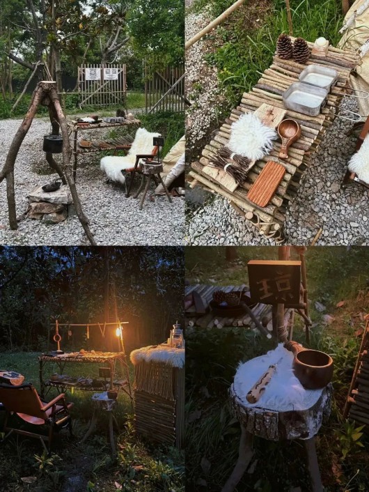 同时,这里也会不定期举办BC(bush craft丛林技能)相关课程培训。2023年,营地增加了全套BC(bush craft丛林技能)露营帐篷体验,包括帐篷、桌椅、炉子、床、睡袋等全套装备。