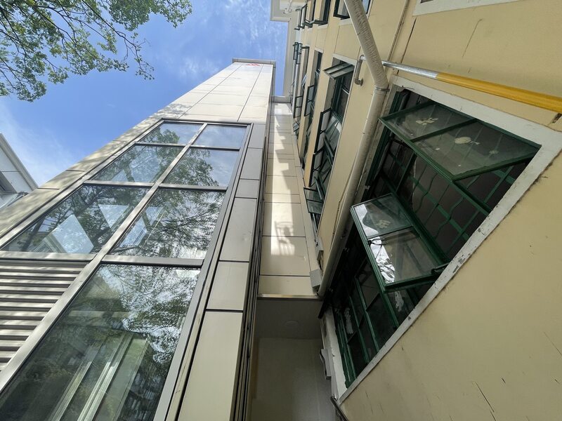 走进梅陇六村小区,加装了半透明玻璃电梯轿厢的居民楼一幢接着一幢。这种低层透明玻璃、中高层全封闭的轿厢设计,让小区看起来依旧通透,不用担心夏季高温造成电梯厢玻璃爆破。但在统一的电梯设计外,梅陇六村的房型却五花八门,有一梯两户、三户甚至更多,居民楼大门有朝南亦有朝北。