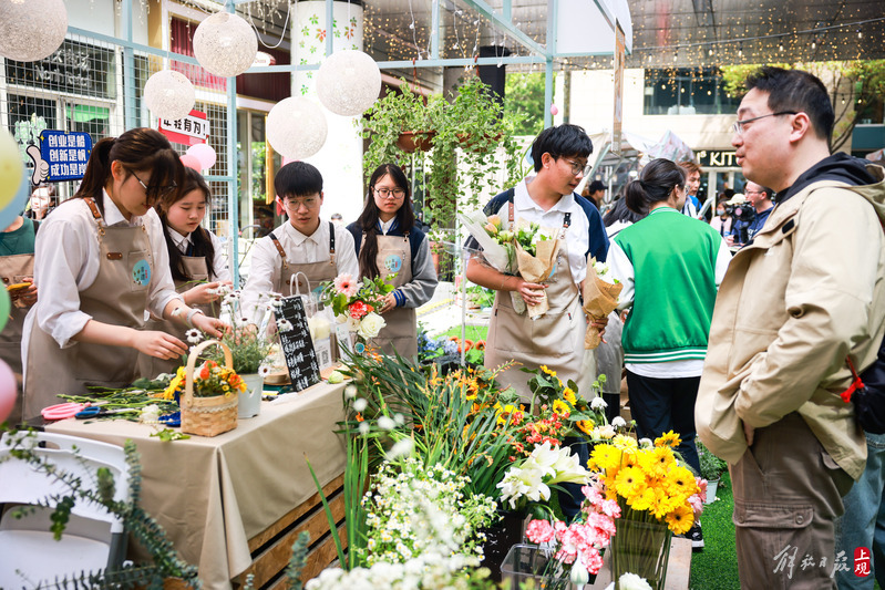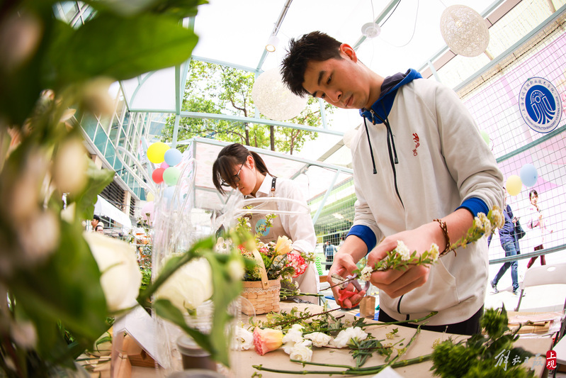 这个周末,获得过第44届世界技能大赛花艺项目金牌的潘沈涵,出现在了上海建设管理职业技术学院的展台,曾经在该校就读园林绿化专业的他现在是学生创业项目的专家顾问,“在这些学生的身上,多少能看到自己当年的影子,花艺还是要扩展视野,多看看外面的世界,创意和市场可以在沟通中产生良好的效果。”潘沈涵说。