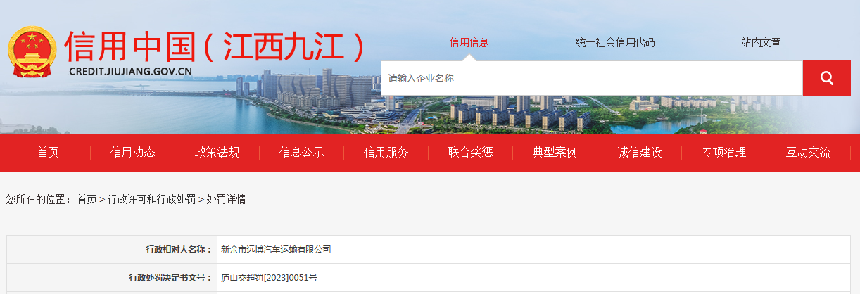 | 行政处罚决定书文号: | 庐山交超罚[2023]0051号 |
