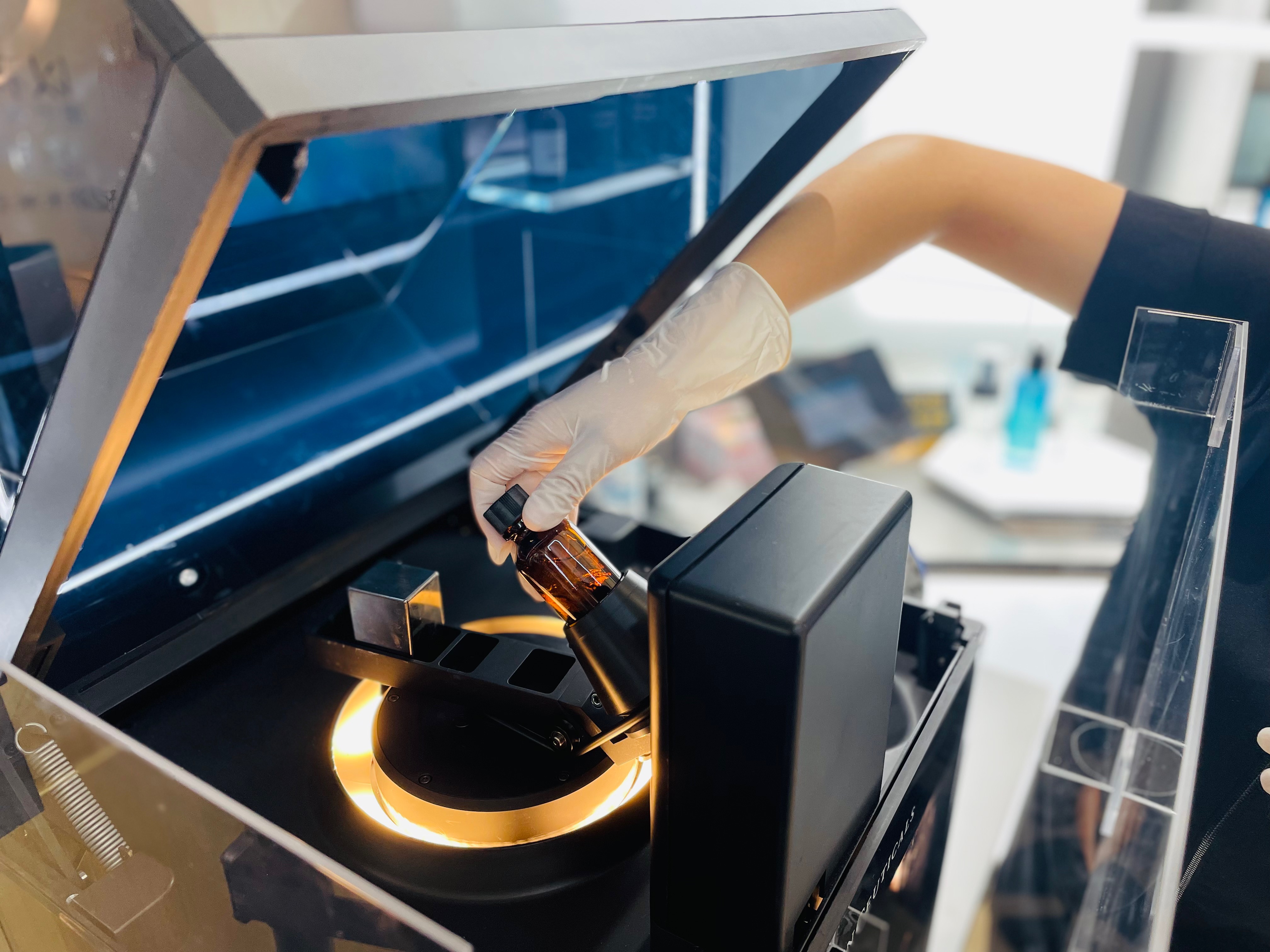澎湃新闻在现场获悉,配方仪可通过专利算法,评估多达250种皮肤类型,随后将8种不同的预制配方进行现场加料和调配,形成多样的配方组合,并以每分钟1200次的转速让成分完全融合。另外,调配仪还有一套追溯系统,用于记录每一瓶精华液的调配服务信息。