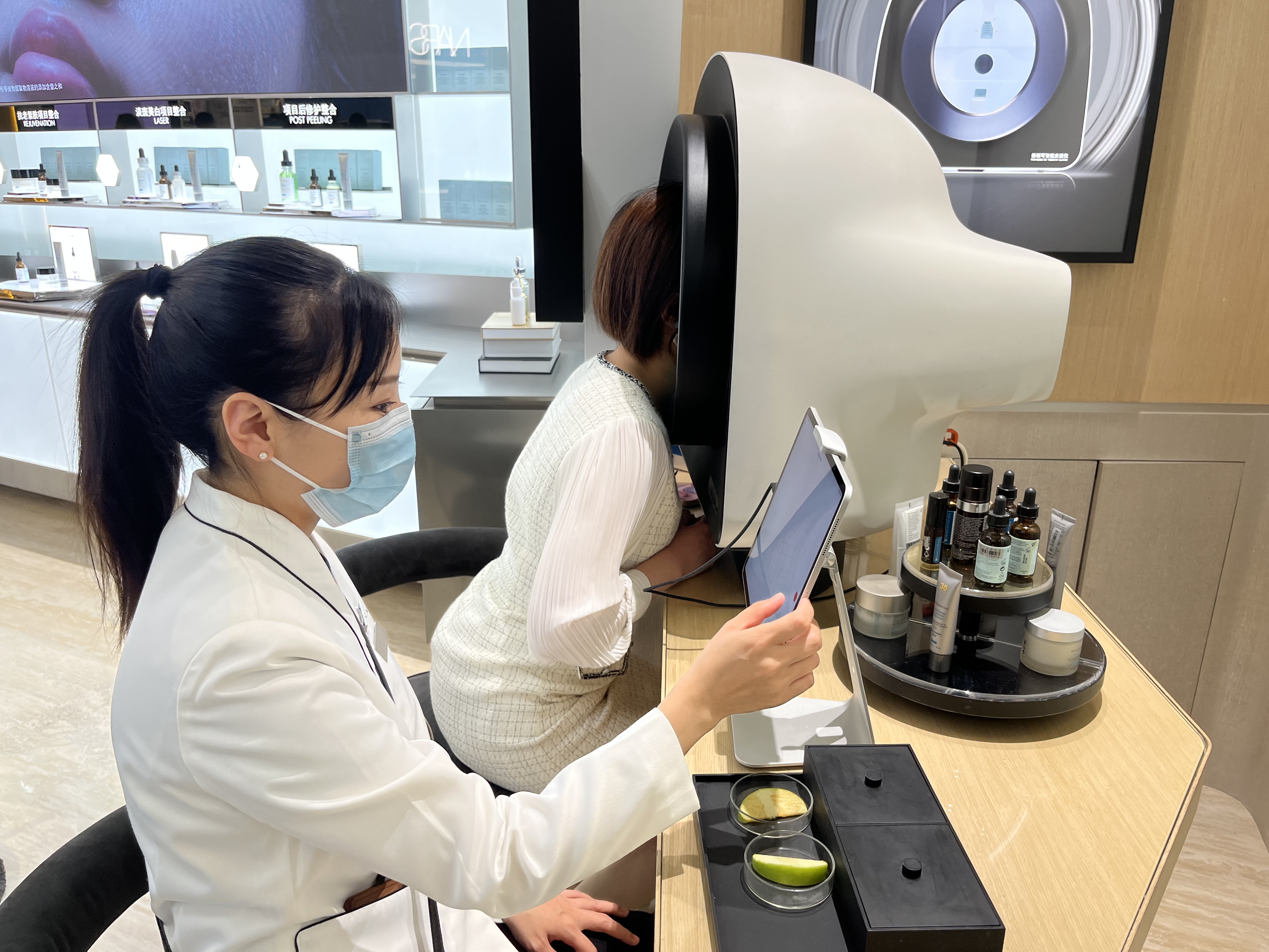 顾客在进行皮肤测试。澎湃新闻记者 邹娟 图