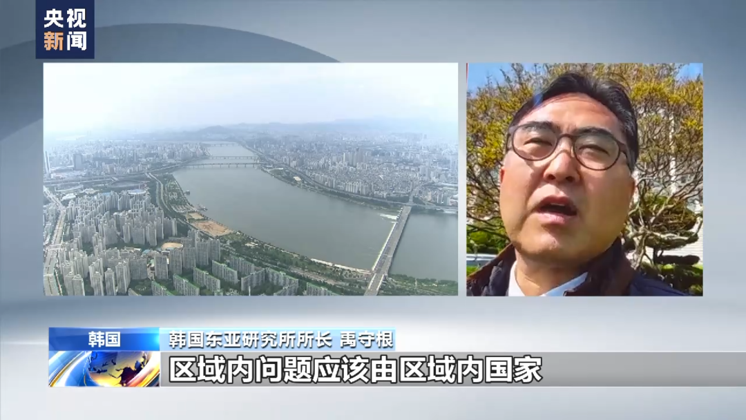 韩国东亚研究所所长 禹守根:区域内问题应该由区域内国家聚到一起,密切磋商,共同协作来解决。不管是什么国家,采用什么方式,把核武器或者尖端武器等频繁运至朝鲜半岛,对于地区安全稳定来说都是非常不可取的。韩国政府的外交现在正倒退回20世纪“单极体系”下,因意识形态划分而对立的“冷战式”外交中。