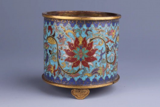 这件清铜胎掐丝珐琅缠枝莲纹炉