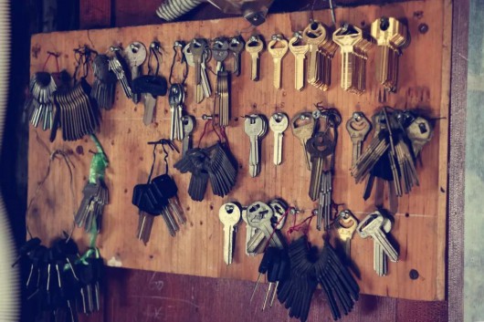 再往里走,一家小店灯牌上红色的“配钥匙、修小家电”字样格外醒目。店面不算大,一台配钥匙的机器靠在墙边,令人眼花缭乱的锁匙配件和工具分门别类地摆放在工作台上。店主正在垂眸研究手中的小家电,他就是陆鸿伟,原本老街上人尽皆知的老师傅。