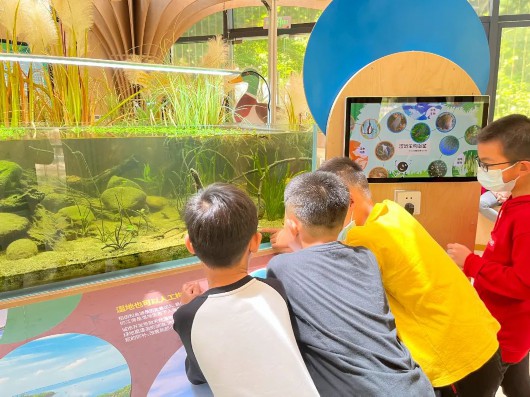 而生态展示馆外的池塘,看似平平无奇,却是一个中华大蟾蜍蝌蚪、泽陆蛙、蜻蜓幼虫、圆尾斗鱼等水生动物行为的生态观察点。