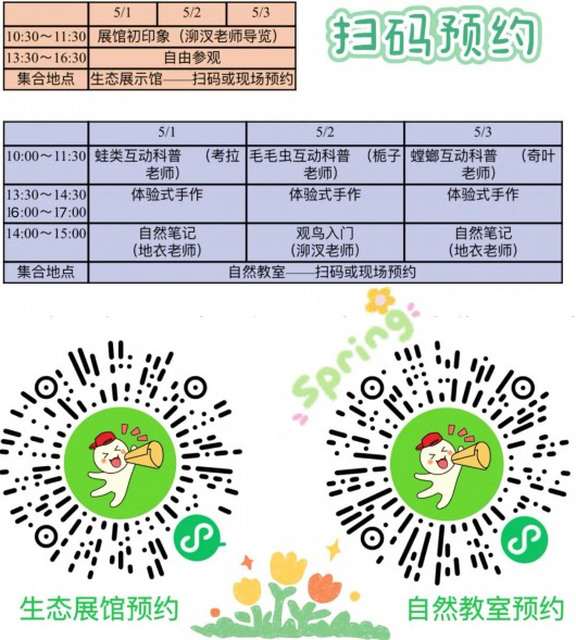 自然中心是和平公园拓展12项“公园+”功能中,+自然教育课堂、+生态科普、+生境花园等功能的重要载体。据悉,在5月1日至3日期间,自然中心每天都会开展展馆导览、科普互动体验等活动,公众可通过扫码或现场预约参加。