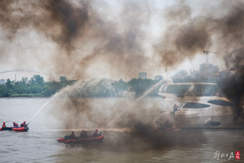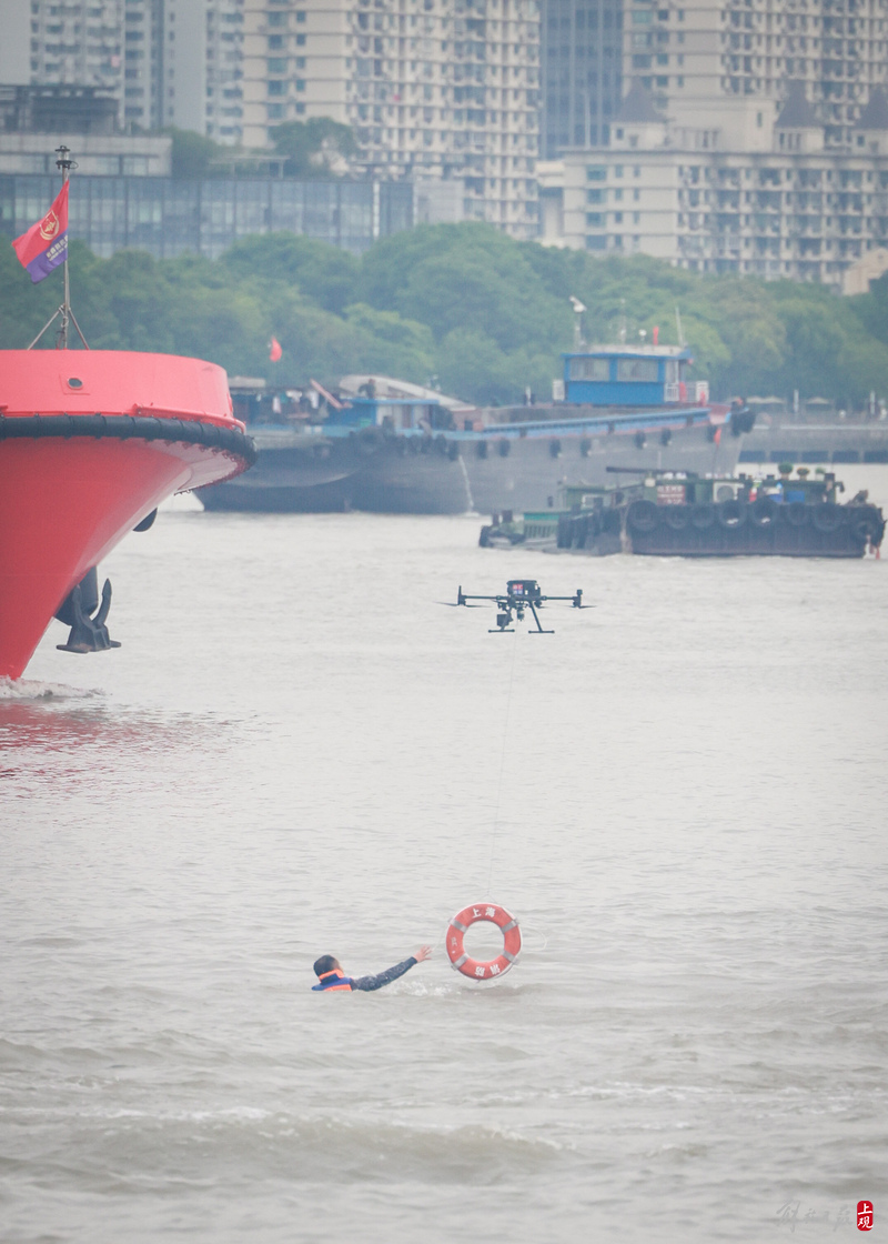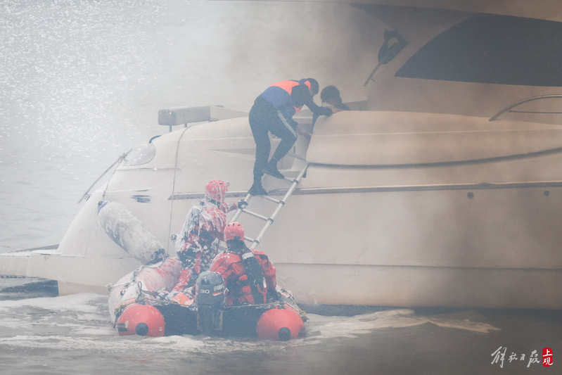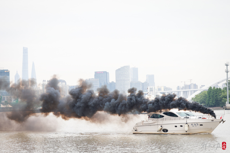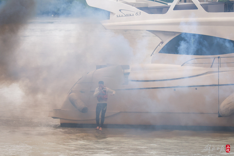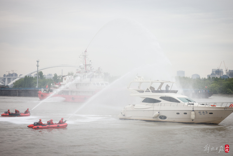 徐汇滨江水域灭火救援演练现场。