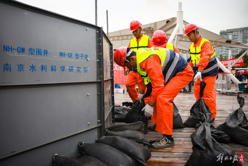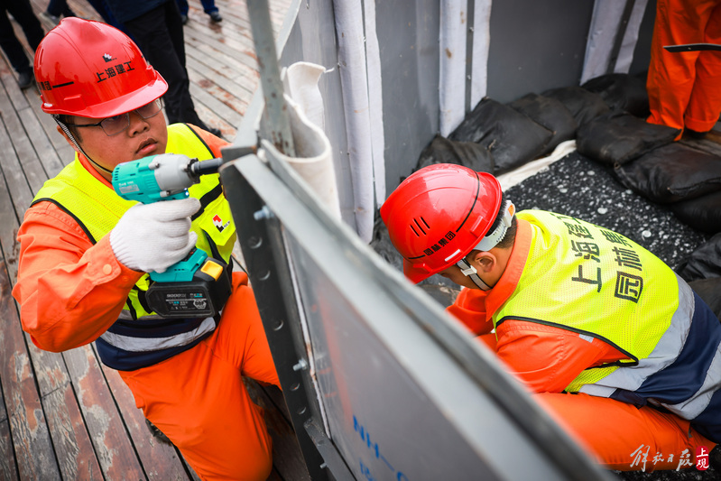 上海建工园林集团工作人员进行防汛应急处置演练。