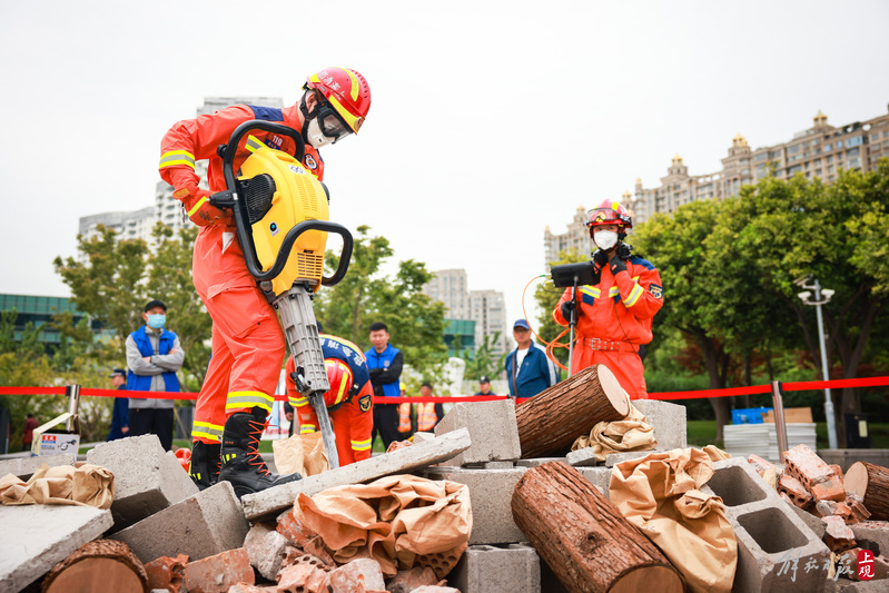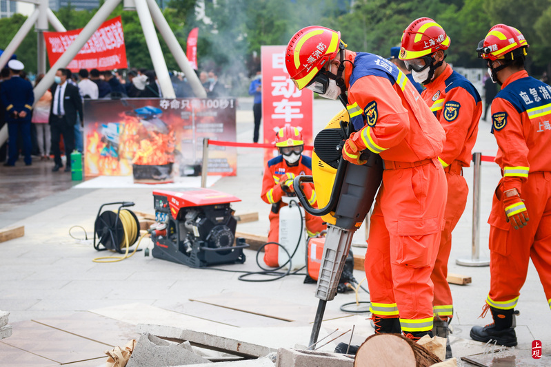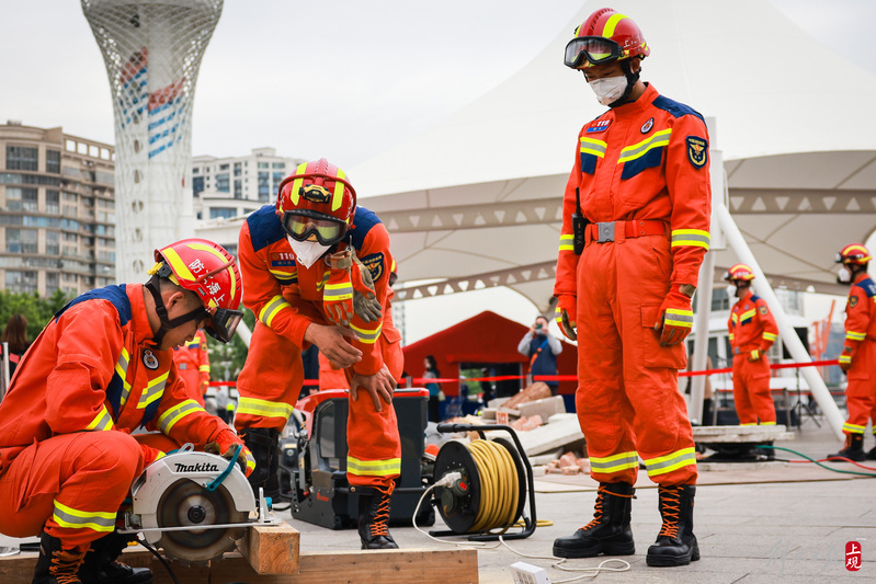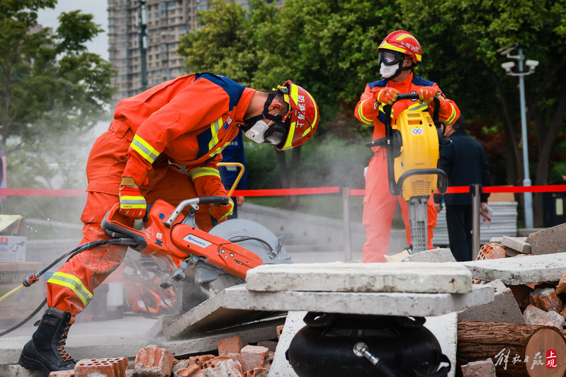 徐汇区消防救援支队进行地震救援处置演练。