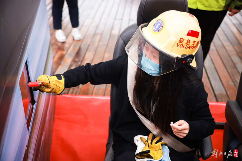 活动体验区内,模拟烟雾逃生、地震避险体验、防汛防台体验、破障逃生、心肺复苏体验、电动自行车火灾模拟等项目,由应急工作人员及消防志愿者现场讲解演示,吸引市民参观体验。