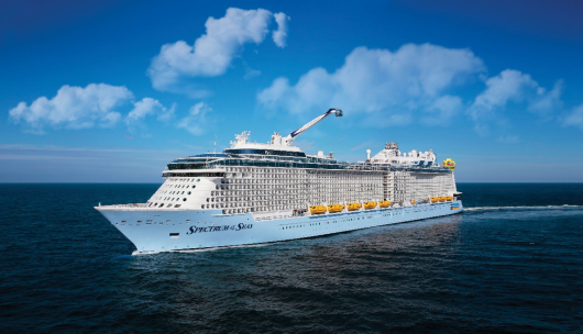 “海洋光谱号”是皇家加勒比斥资12.5亿美元为各个年龄段中国度假者定制的超量子级豪华邮轮,总吨16.8万吨,长348米、宽41米,共有16层客用甲板,2124间客房,可容纳5064名宾客。邮轮上提供多达33种中西荟萃的餐饮选择,无论是可供一日三餐海上盛宴的主餐厅和品种多样的帆船自助餐厅,还是原汁纯味的奥利弗意式餐厅、牛排馆、中式火锅、泉·日式料理和铁板烧等特色餐厅,宾客可以在一个航程中尽享全球美食。白天宾客可以登上荣获吉尼斯世界纪录邮轮最高观景台的北极星,在距离海平面91米的高度,俯瞰船体、眺望海天和目的地的壮丽景色,亦可以在甲板上冲浪、跳伞、攀岩,或在海上最大室内运动馆玩碰碰车、篮球、乒乓球、溜冰、击剑、射剑、电竞等活动。晚间多场皇家王牌音乐舞蹈大秀轮番上演,融合高科技和强大专业演艺阵容、沉浸式的场景演绎《丝绸之路》《魅舞今昔》《光谱奇侠》,令宾客宛如置身于百老汇或伦敦西区的夜生活。“海洋光谱号”上的“皇家大道”是海上最大的免税购物街,有手表、首饰、箱包、化妆品等各类商品的一线、高端、潮流大牌的最新款式。被称为“船中船”的“皇家府邸”,是专为套房宾客打造的VIP休闲和餐饮场所。“海洋光谱号”堪称“最适宜亲子的邮轮”,包括数十种运动项目、复式双层“完美家庭套房”、适合6个月到18岁的儿童和青少年的海上历奇俱乐部和寓教于乐的国际文化氛围。2019年6月-12月“海洋光谱号”从上海成功运营48个航次,接待过超23万名中外宾客,收获了来自媒体和消费者的赞誉和好评。