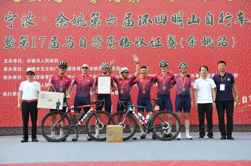 马自骑资格认证赛是一项全国知名的大众骑行赛事,是中国第一个自行车挑战赛IP,余姚已成功举办五届。这也是继舟山之后,春秋集团与当地合作,在长三角区域举办的又一个大规模的骑游盛事。 经过一天的激烈角逐,RideNow Racing车队、SQUALO大鲨鱼车队、C6 cycling club车队分获全程组团体冠军、亚军、季军。来自RideNow Racing车队的Richard Welch与Vittorio Tentori 并列赢得男子全程组冠军,来自河南南阳的张小杰赢得女子全程组冠军,来自江苏苏州的吴成龙赢得男子半程组冠军,来自山东济宁的陈文娟赢得女子半程组冠军。 余姚依托四明山丰富的红绿资源,成功举办了中国四明山百公里户外运动挑战赛、浙江省运动休闲旅游节、环四明湖半程马拉松等高规格、多样化的体育赛事,持续擦亮了“运动四明”金名片。