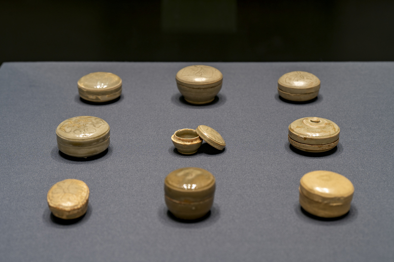 兼两座青瓷博物馆馆长的陈国桢所藏瓷盒系列,共展出188件/组三国至元代的瓷盒,不少是首次与观众见面。他赠予上海交大的33件中国古陶瓷,跨越西周至宋代,系统反映越窑发展历程,也在展览中呈现。名作家、学者余秋雨特意挥毫为展览题写展名、书名;海派书画家奚文渊专门为展览创作《晓妆图》;陶艺工艺美术大师陈鹏飞、梁贵福等则为展览设计制作文创瓷盒……