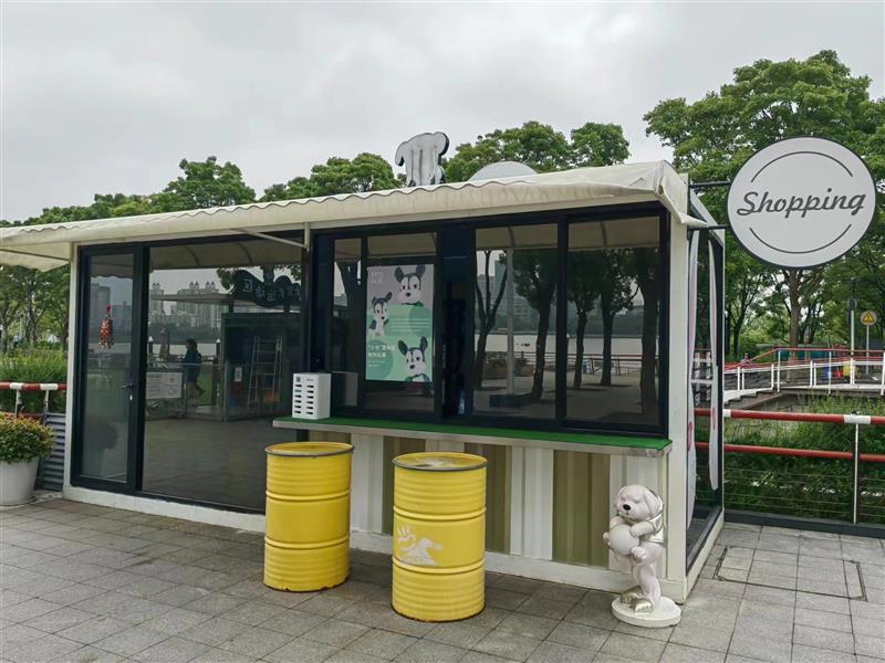 好在前方步道北侧有几幢玻璃房,看起来像是商业区域。凑近,记者看到,这里是“狗GO乐园”和“Manner咖啡”,遗憾的是,咖啡店员表示这里只能买到咖啡,不卖其他类饮品,附近也没有售卖机之类可供买水。“狗GO乐园”旁倒是有一个带“shopping”标识的小屋,不过,里面的货架上摆放的主要是狗粮等宠物食品、用品。