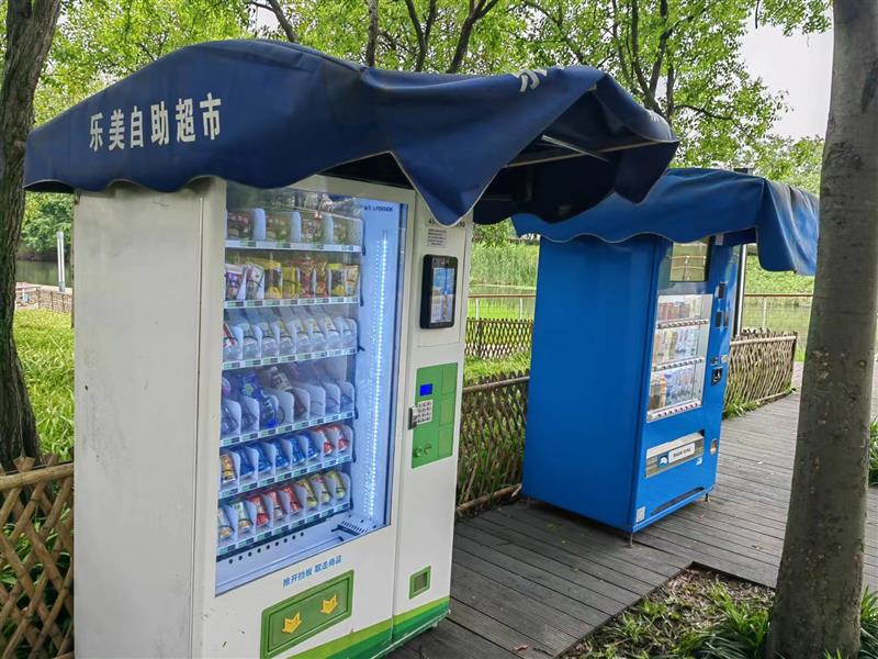 无奈,记者向前继续骑行一段路,终于,路边出现两台顶着“乐美自助超市”蓝色篷布的自助售货机。售货机内的品种比较齐全,有矿泉水、运动饮料、罐装果汁、包装糕点和零食等等。记者在机器上选择了一瓶“脉动”,并按照指示,选择微信扫码付款,很快,6元支付成功,可饮料却没有被推进下方的取货口。不一会,记者手机上收到了一则退款消息:6元被原路退回,机器屏幕上也显示购买失败已退款。