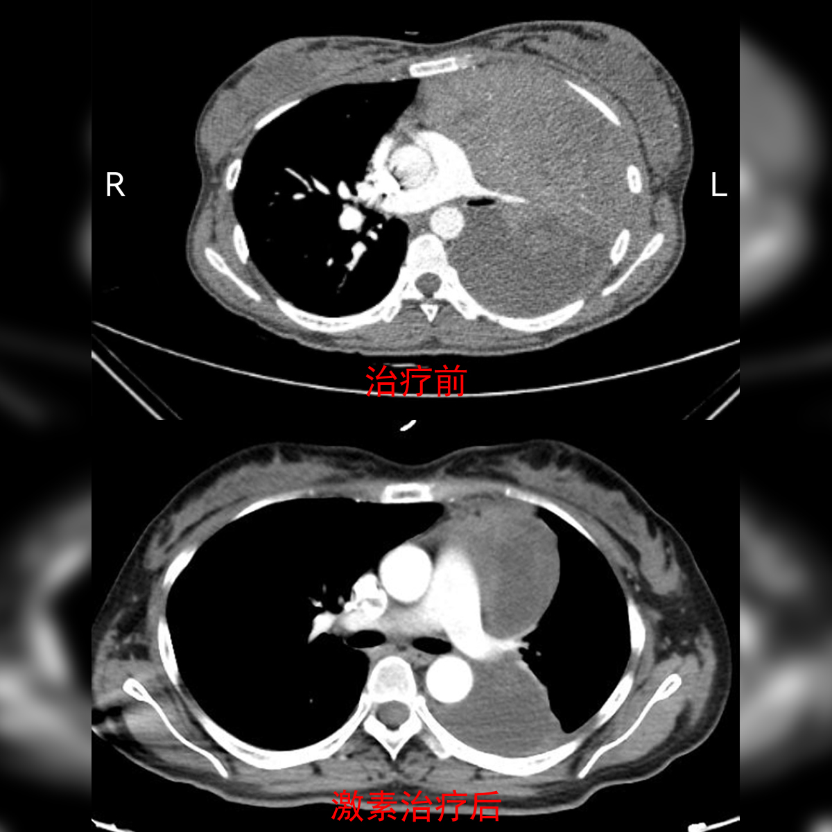 治疗前和激素治疗后的影像学对比图。