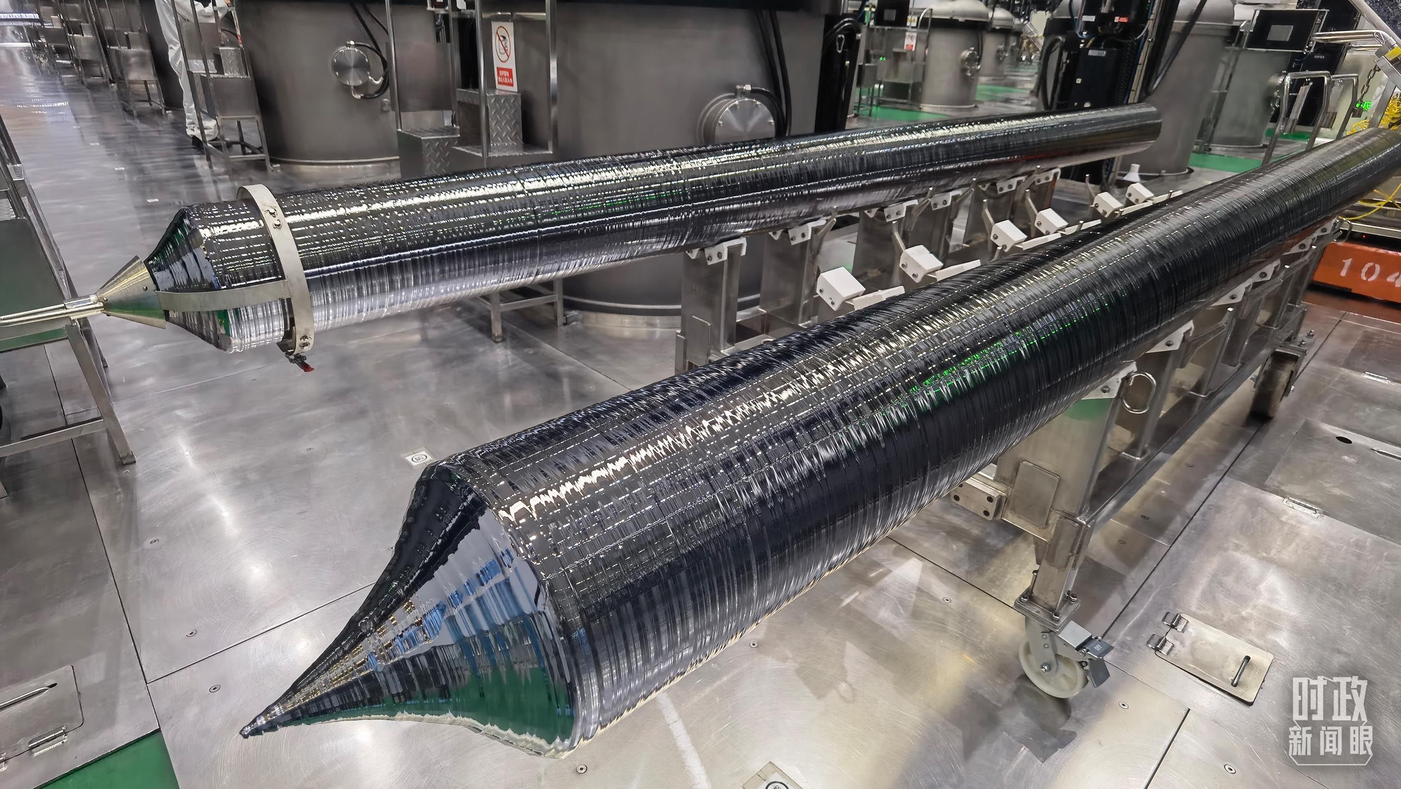 △园区企业生产的光伏单晶硅棒。(总台央视记者 石丞拍 摄)