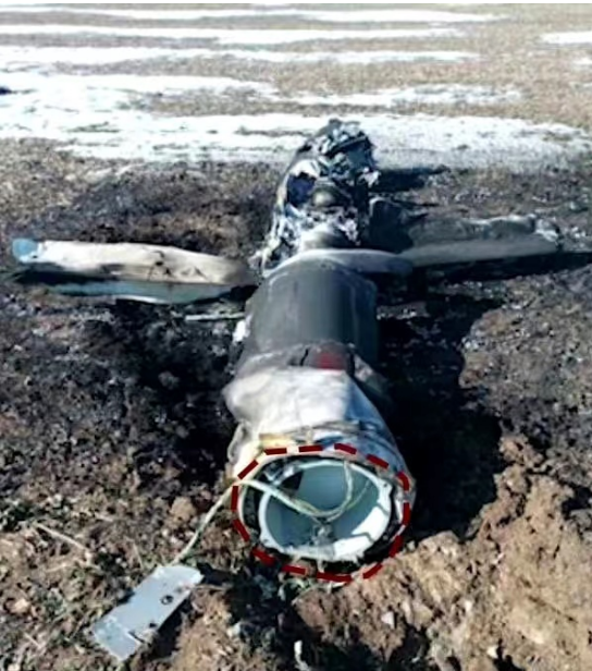 在乌克兰出现的ADM-160空射诱饵弹残骸,小图为弹翼展开处于飞行状态的诱饵弹。