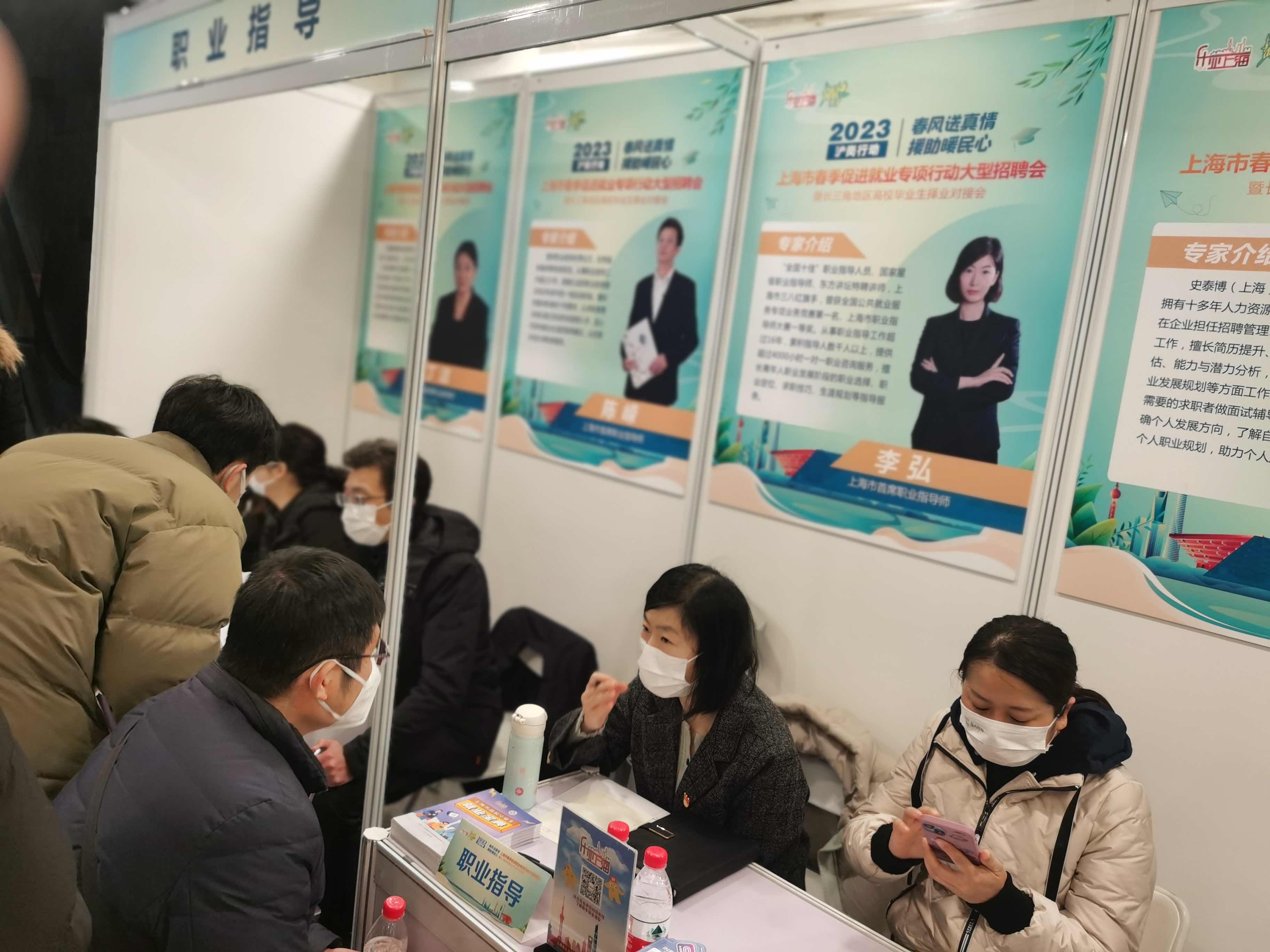 2023年护岗行动上海市春季促进就业专项行动大型招聘会职业指导咨询现场。右二为李弘。 本文图均为受访者供图